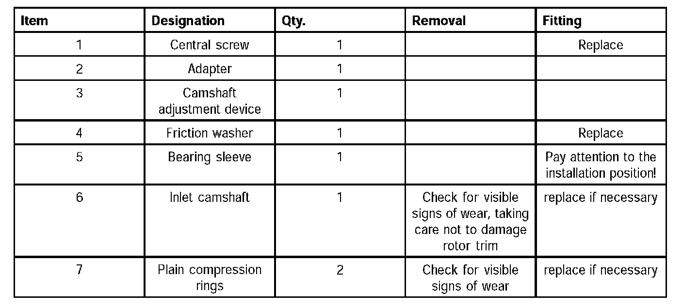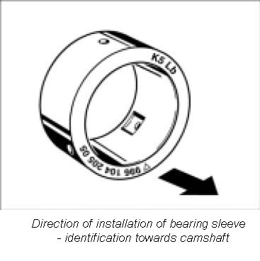 ^ The identification on the bearing sleeve should point towards the camshaft (see illustration).