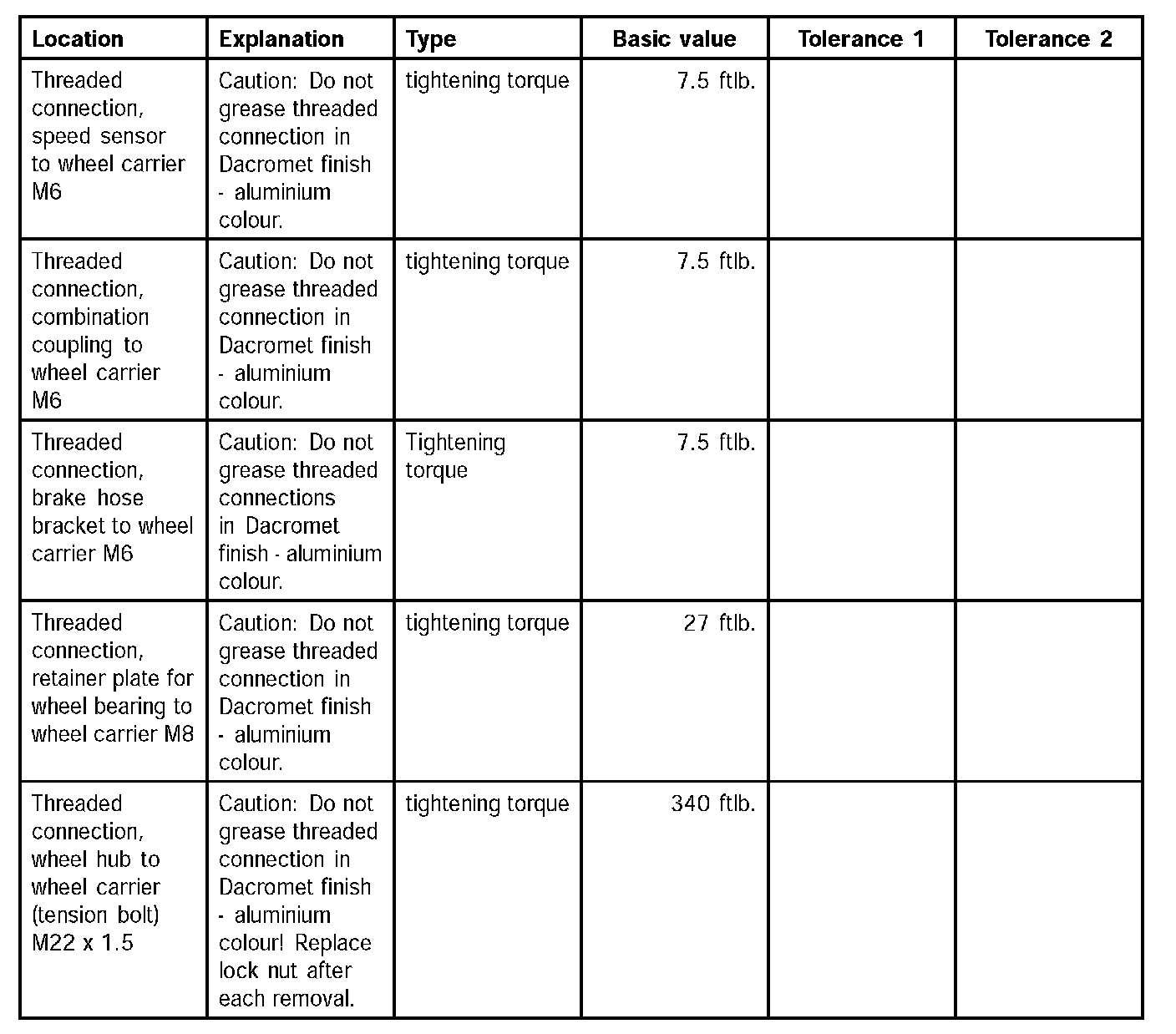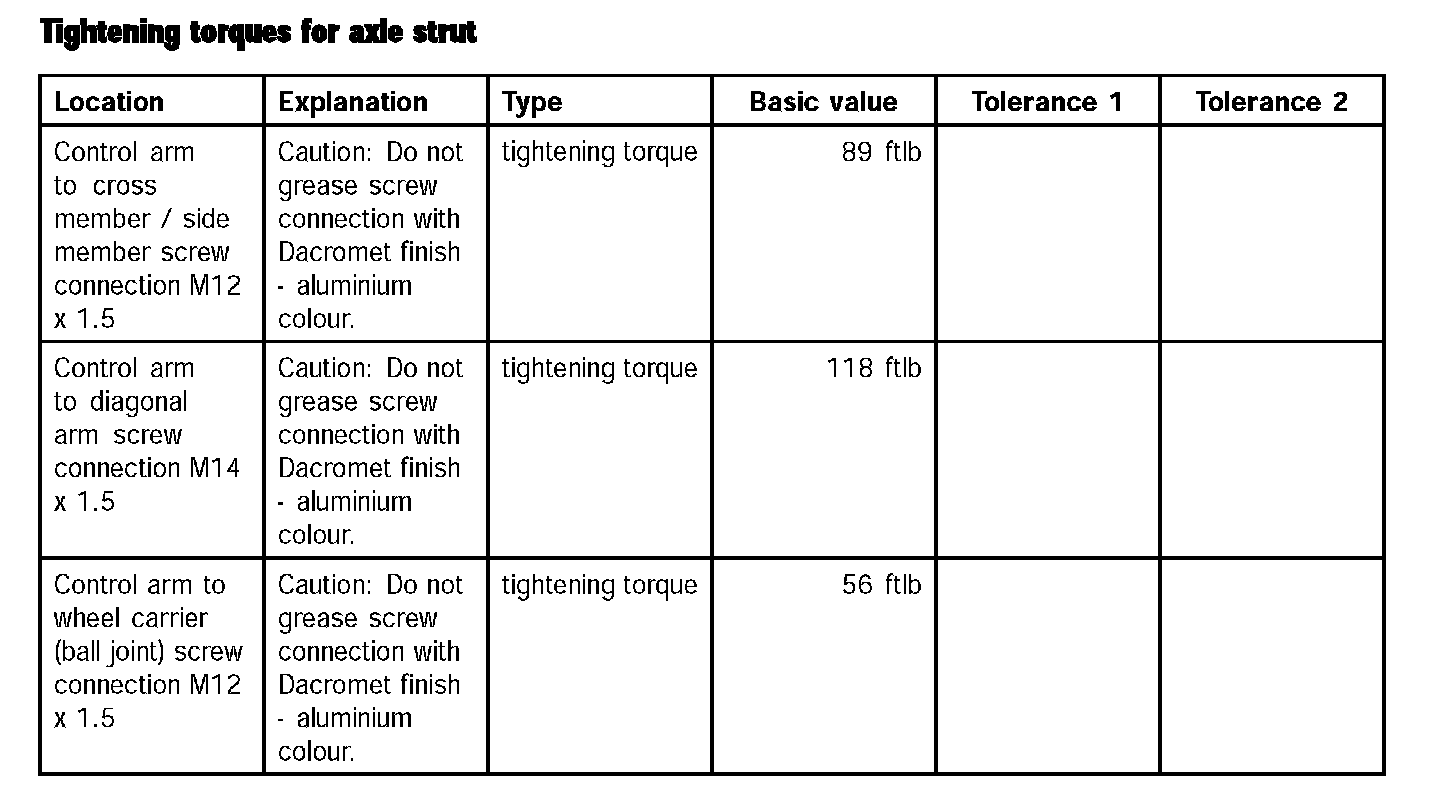 Tightening torques for wheel carrier (Part 2):