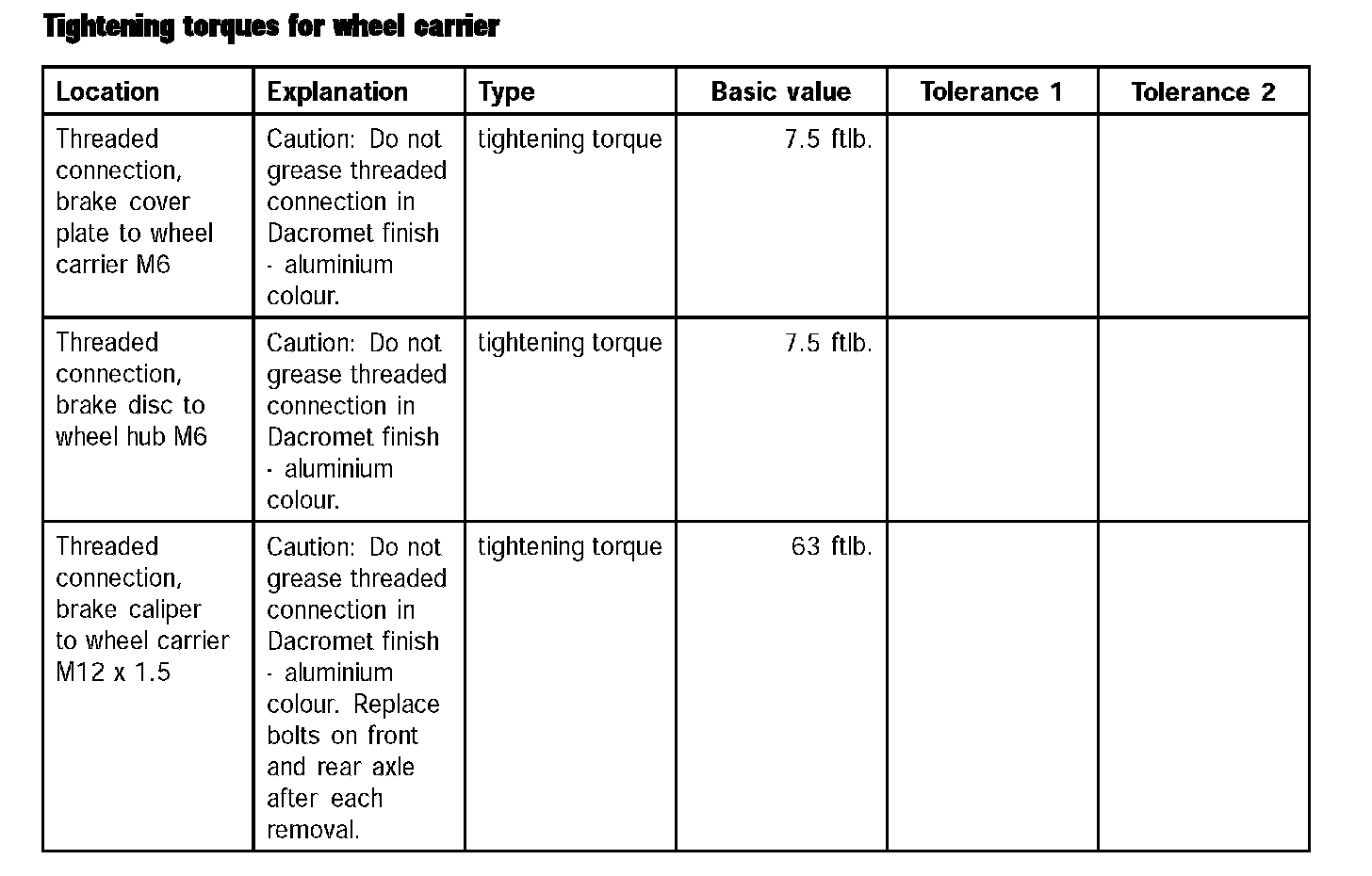 Tightening torques for wheel carrier (Part 1):
