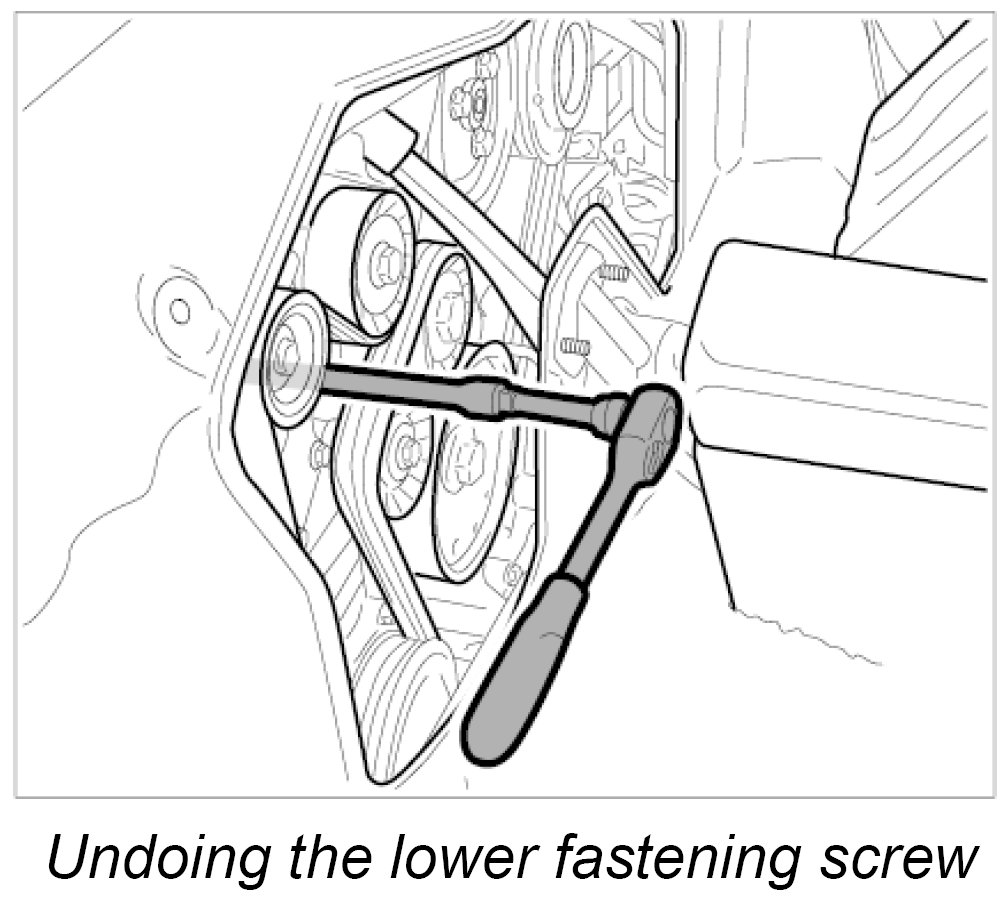 3. Unscrew lower fastening screw -4- through the rear wall cover opening using a ratchet spanner and an extra long extension.