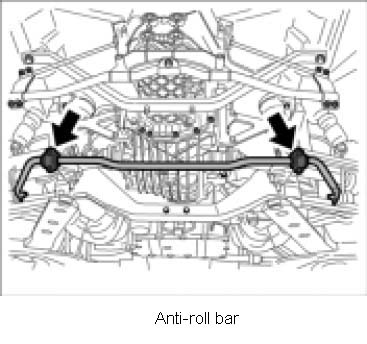 1. Loosen fastening screws between anti-roll bar and rear axle carrier side panel and fold anti-roll bar forward.