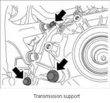 3. Unscrew fastening screws between the transmission support and the transmission.
