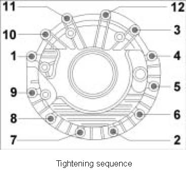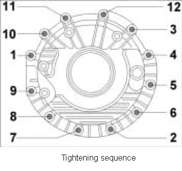 4. Screw in lid screws in the following order -1 to 12- and tighten.