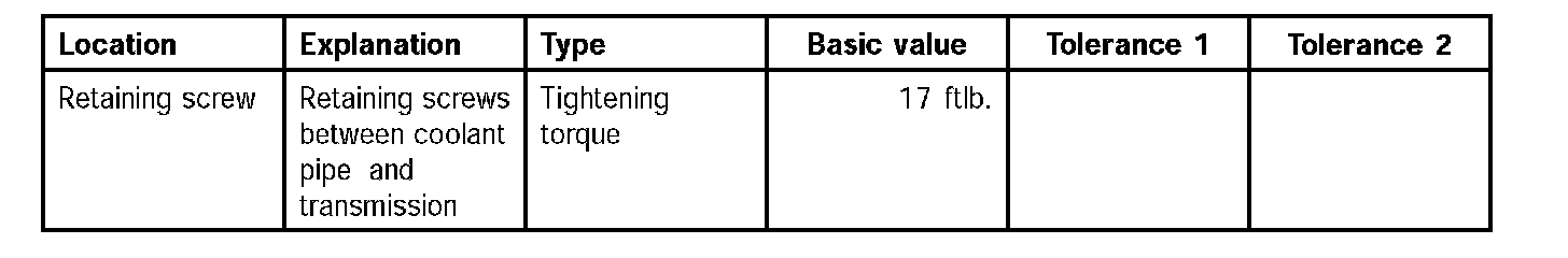 1. Screw in retaining screw between the transmission and the coolant pipe.