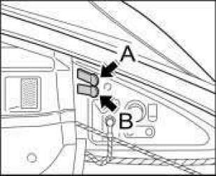 1. Undo and pull out the plastic nut -A- for the carpet trim.