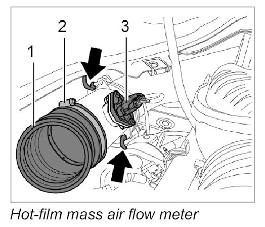 2. Release and disconnect cable plug for air flow sensor -3-.