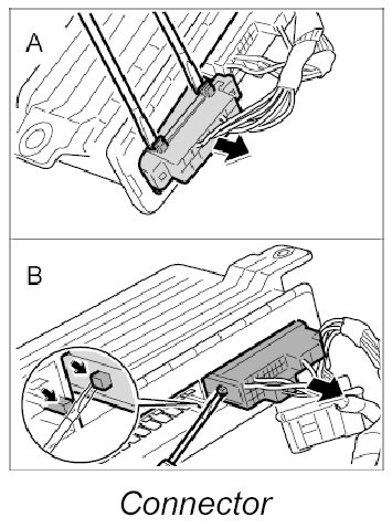 3. -A- Carefully lever the connector away from the control unit using two screwdrivers. Connector