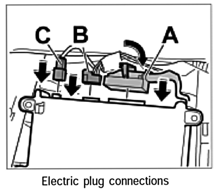 2. Push in electric plug connections -C, B- until plugs are felt to engage.