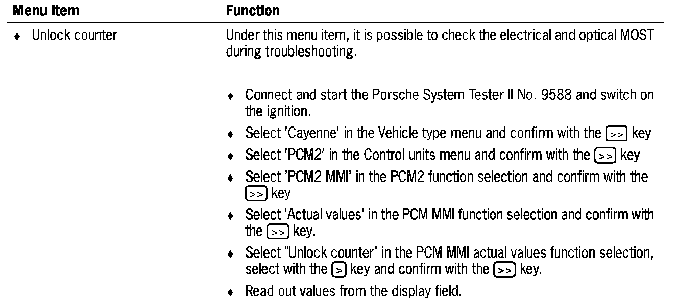 It is possible to read out the unlock counter under the 'Actual values' menu item.
