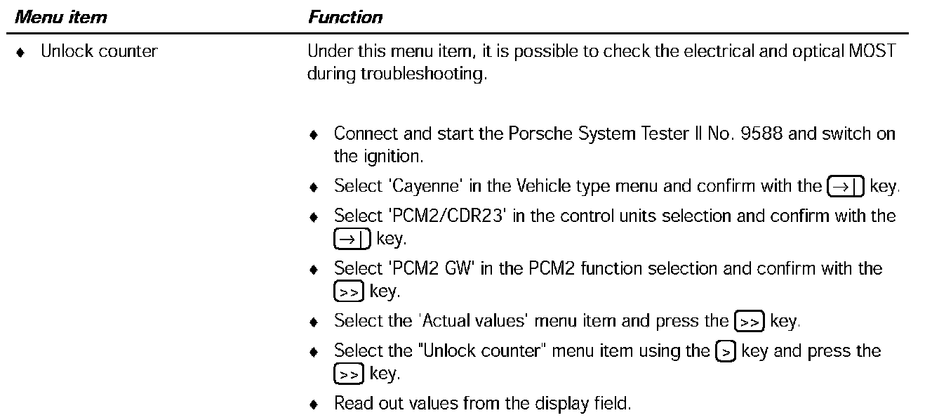 It is possible to read out the unlock counter under the 'Actual values' menu item.