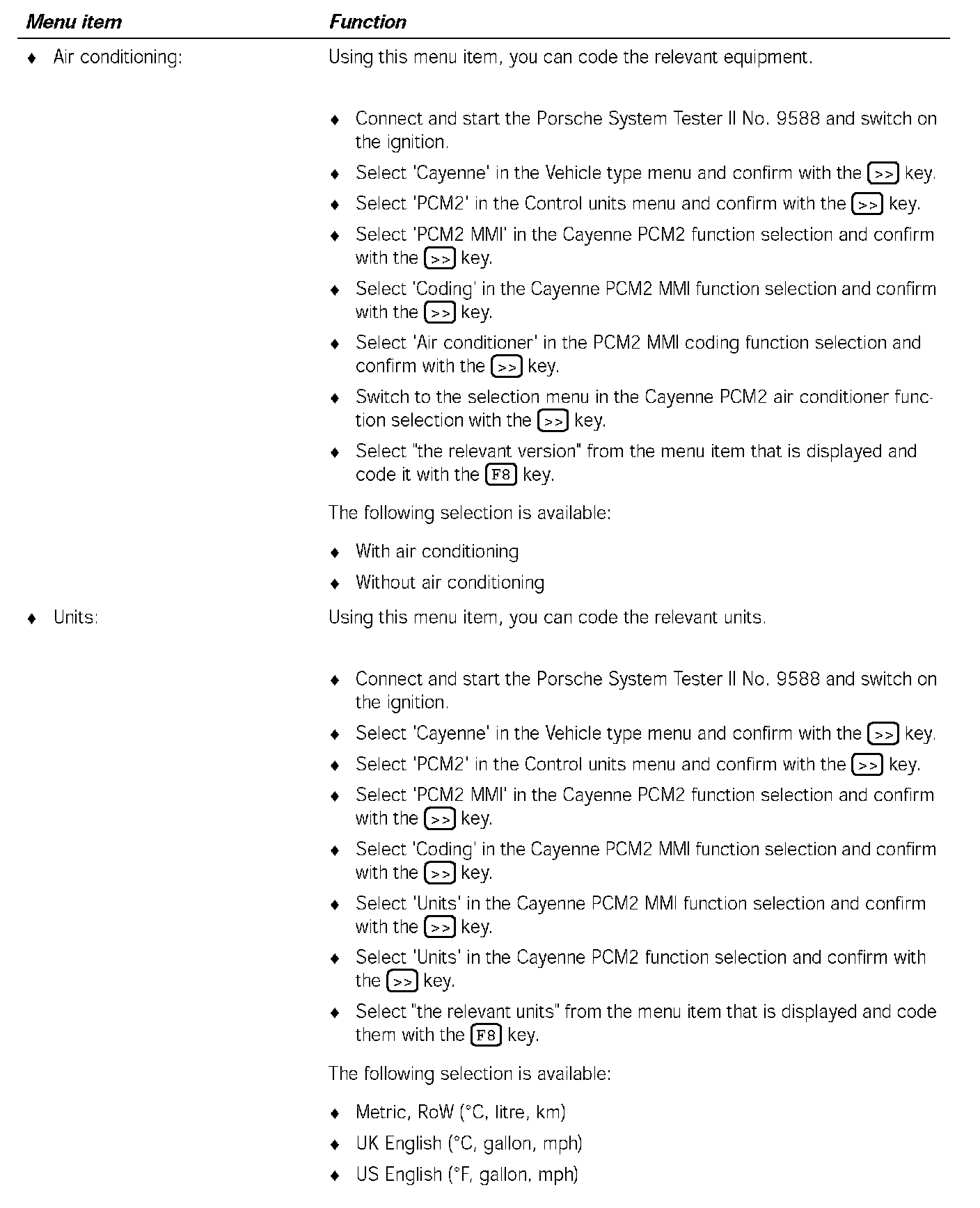 2. Select 'Cayenne' in the Vehicle type menu and confirm with the [>>] key.