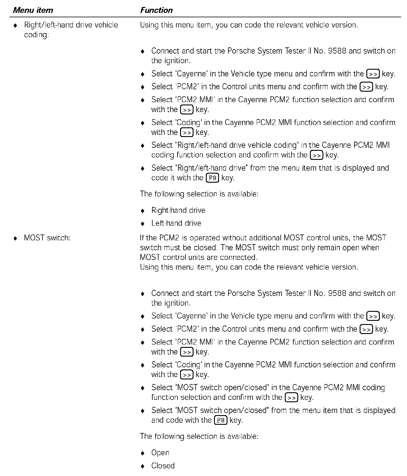 - When the PCM2 is replaced, the coding must be performed in accordance with the connected MOST control units.