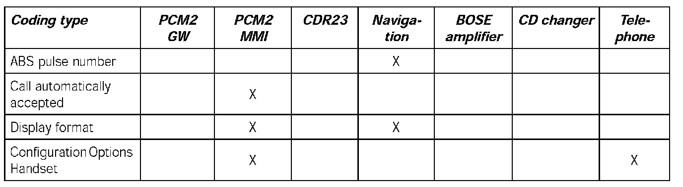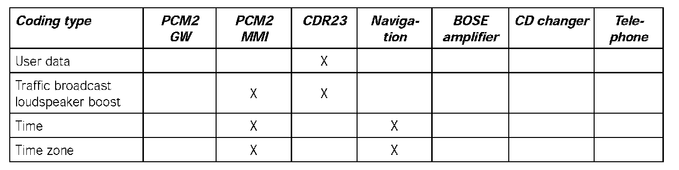 - When the PCM2 is replaced, the coding must be performed in accordance with the connected MOST control units.