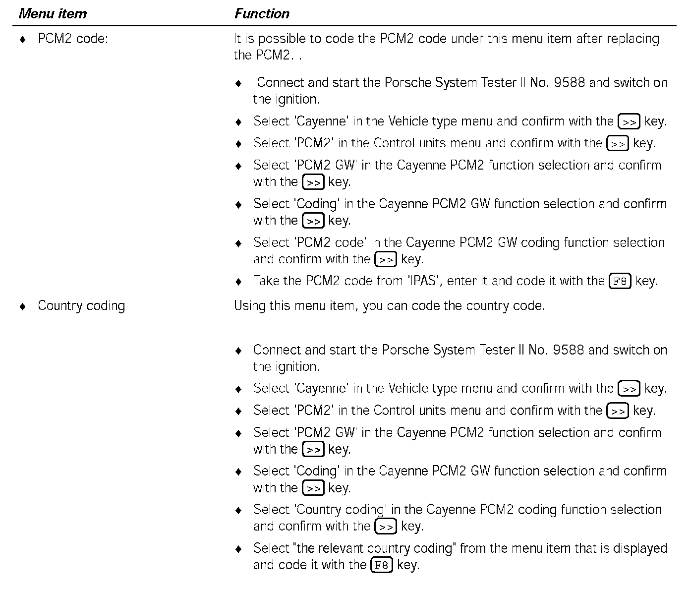 2. Select 'Cayenne' in the Vehicle type menu and confirm with the [>>] key.