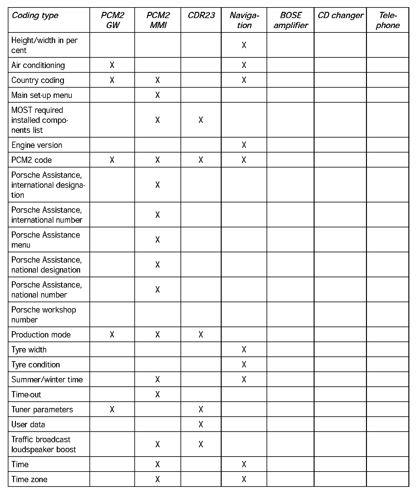Coding Table