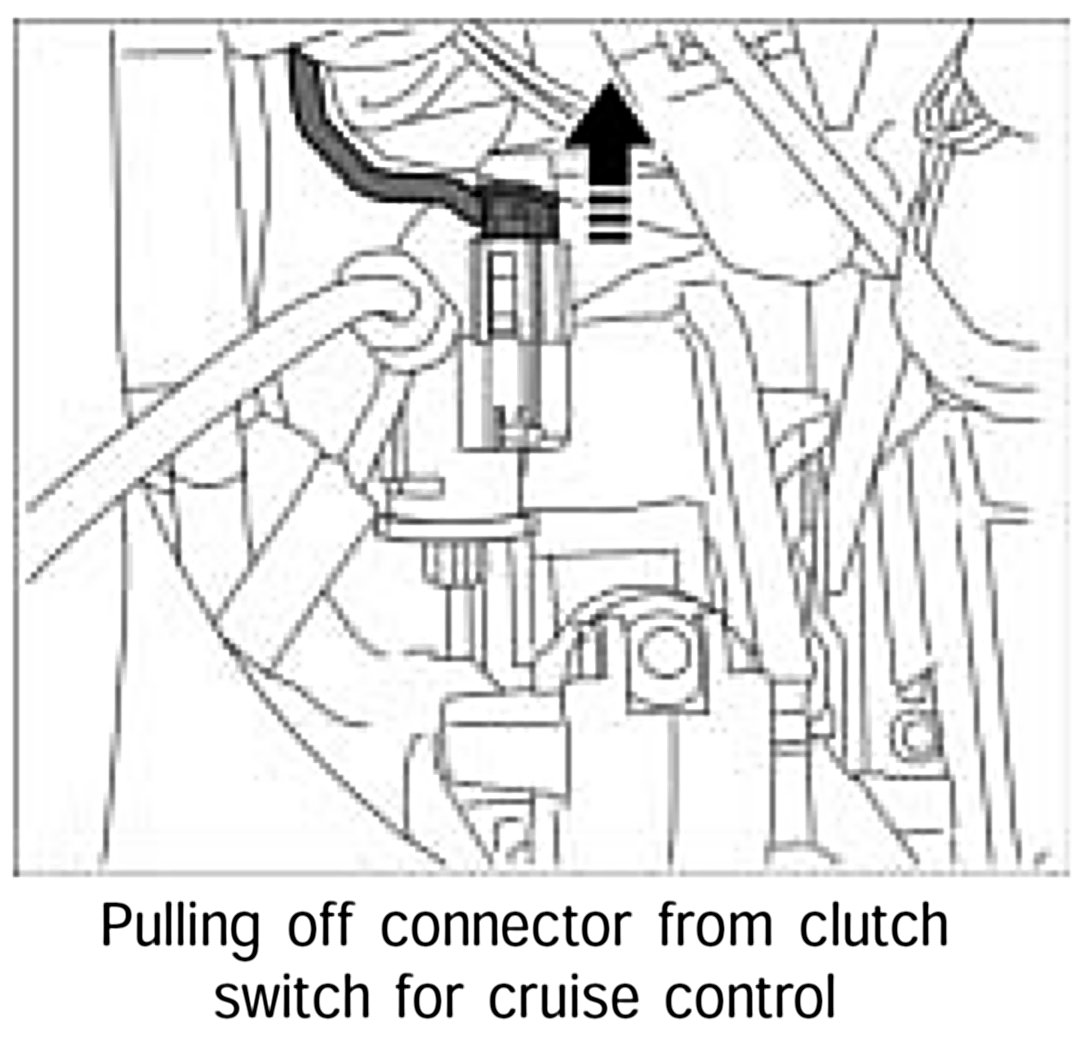1. Release and pull off connector plug from clutch switch for cruise control.