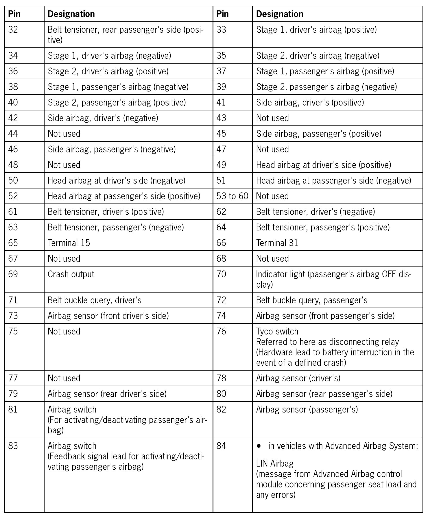 Connector Assignment, Airbag
