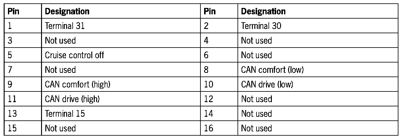 Wiring harness plug A, 16-pin (steering column switch with electronic unit)