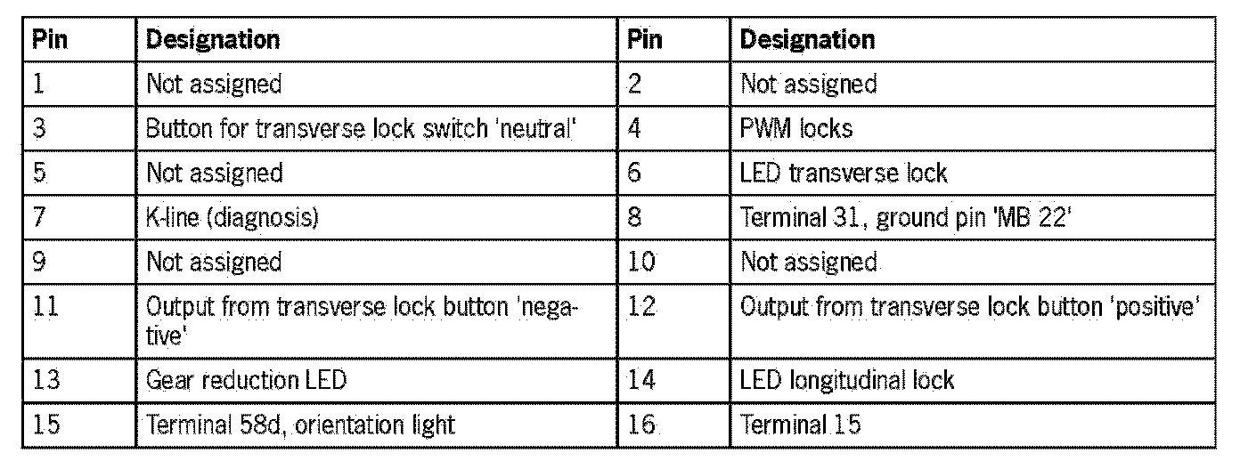Gear selection switch connector assignment (running gear control module), '16-pin'
