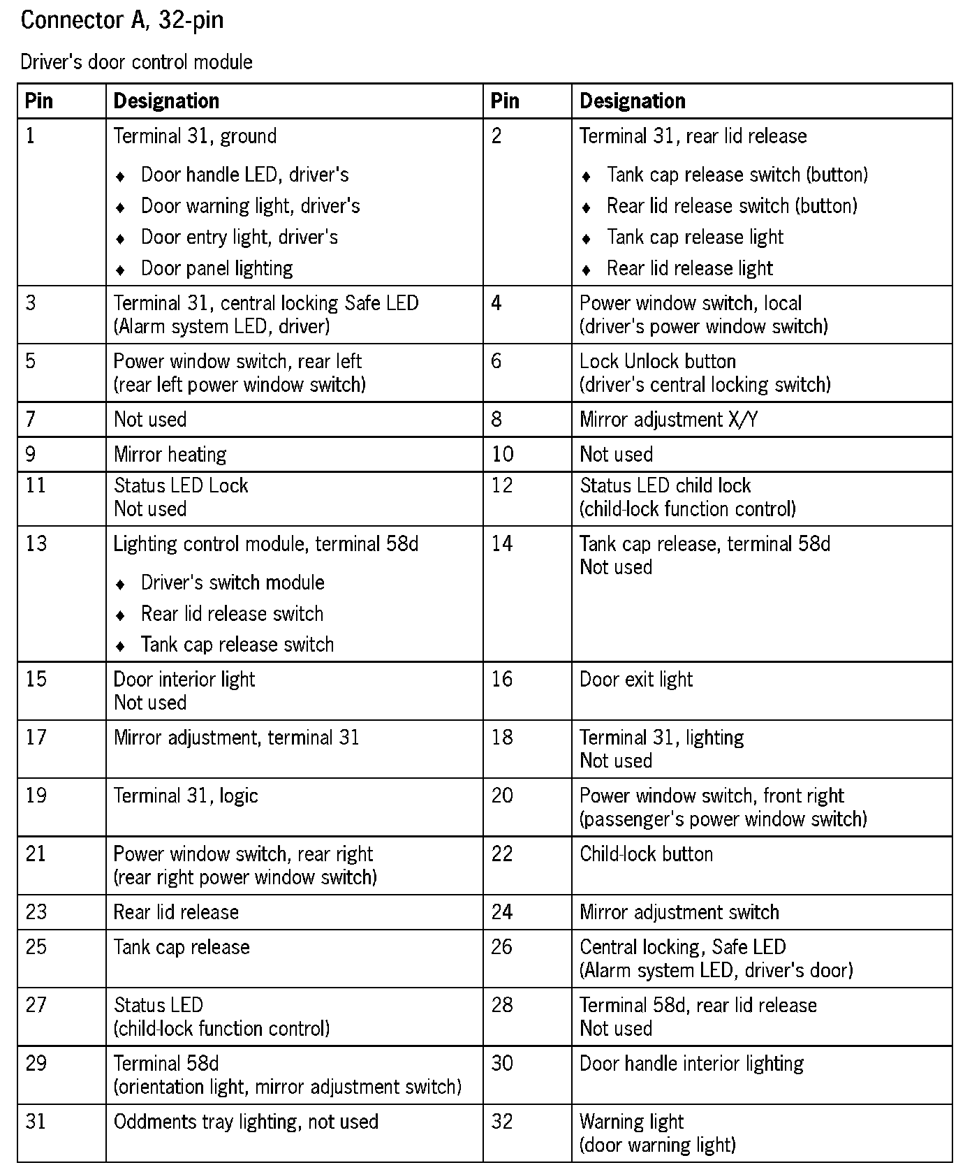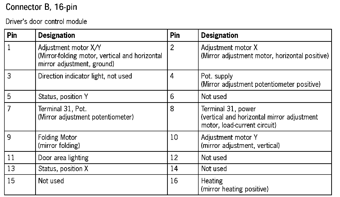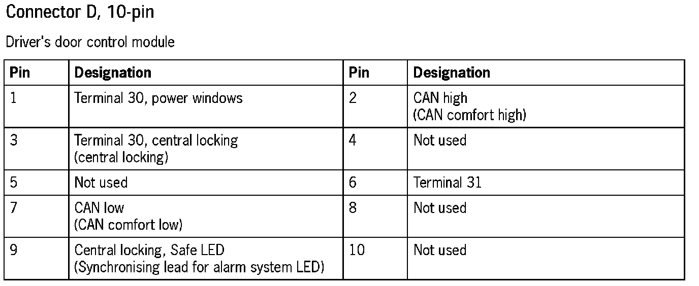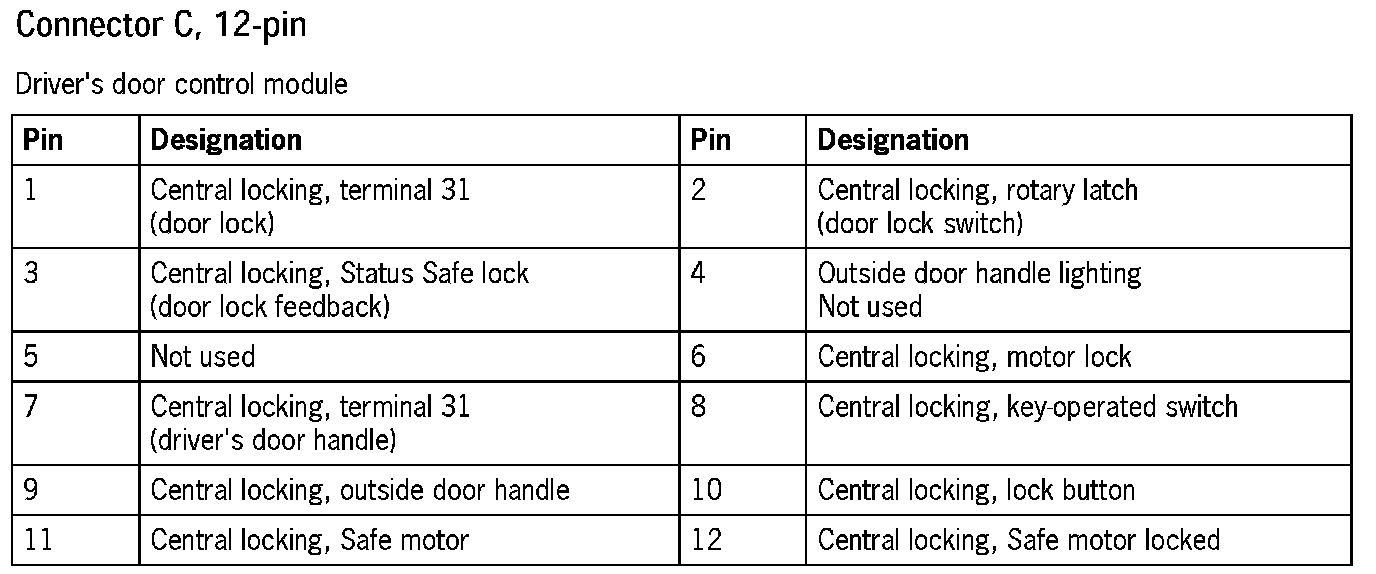 Connector Assignment, Driver's Door Control Module
