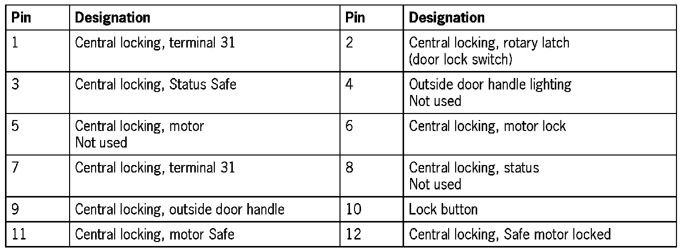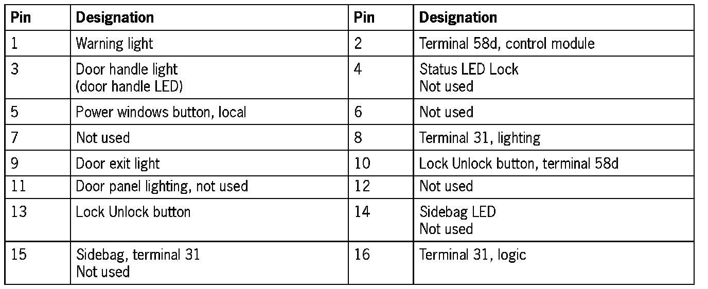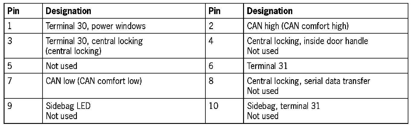 Connector Assignment, Rear Left and Right Door Control Modules