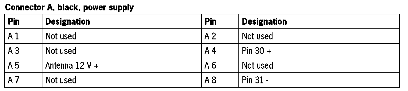 Connector A, black, power supply