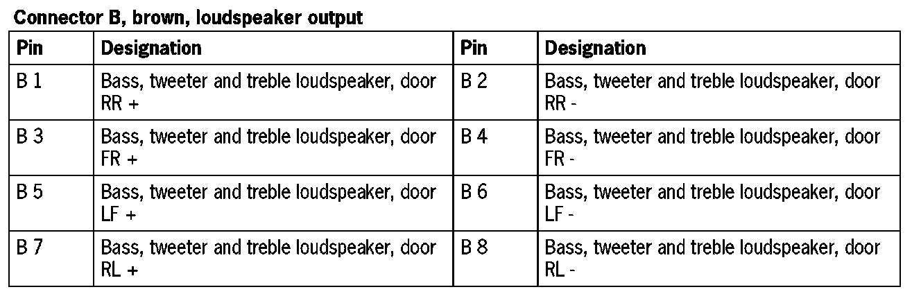 Connector B, brown, loudspeaker output