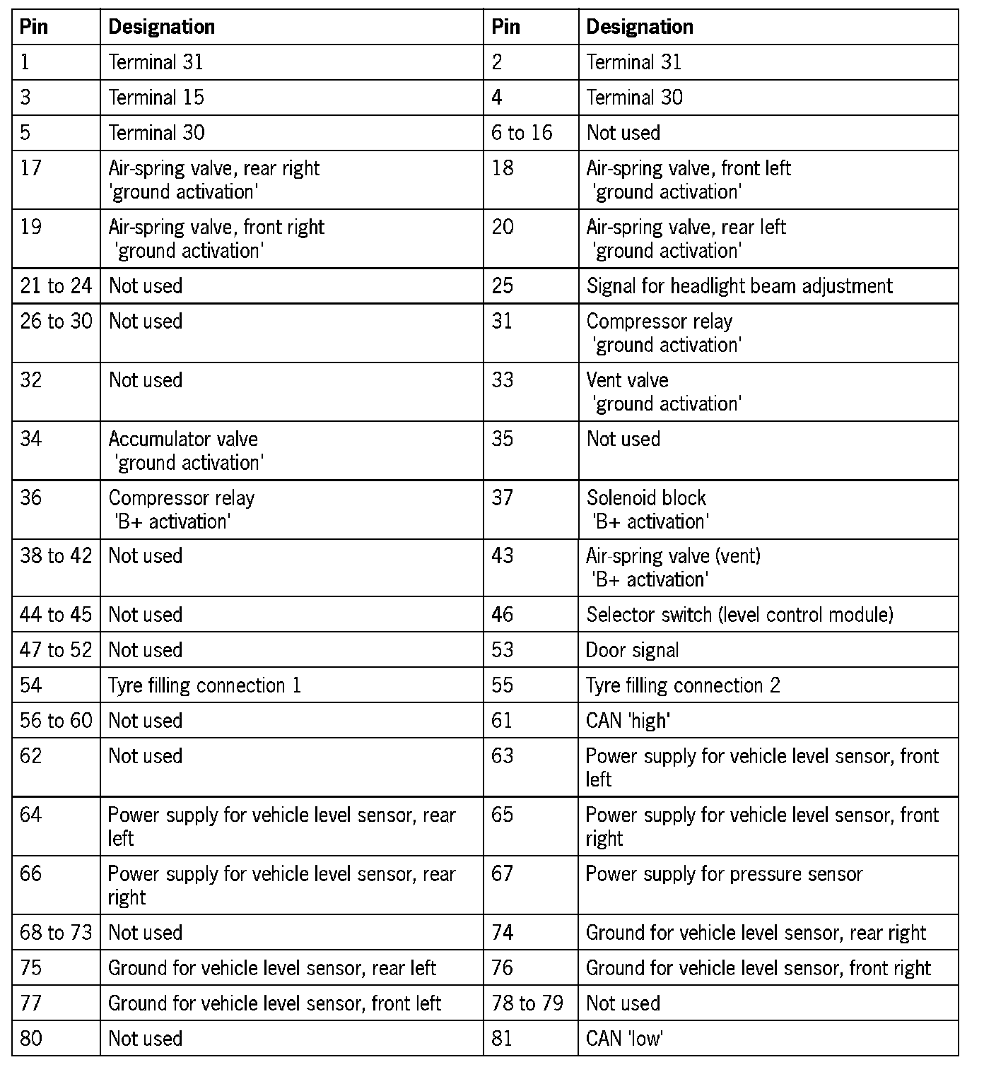 Wiring harness plug A, 81-pin, level control module