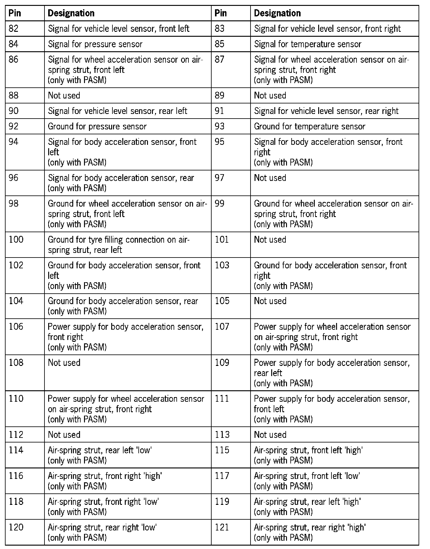 Wiring harness plug B, 40-pin, level control module (pin assignment includes PASM)