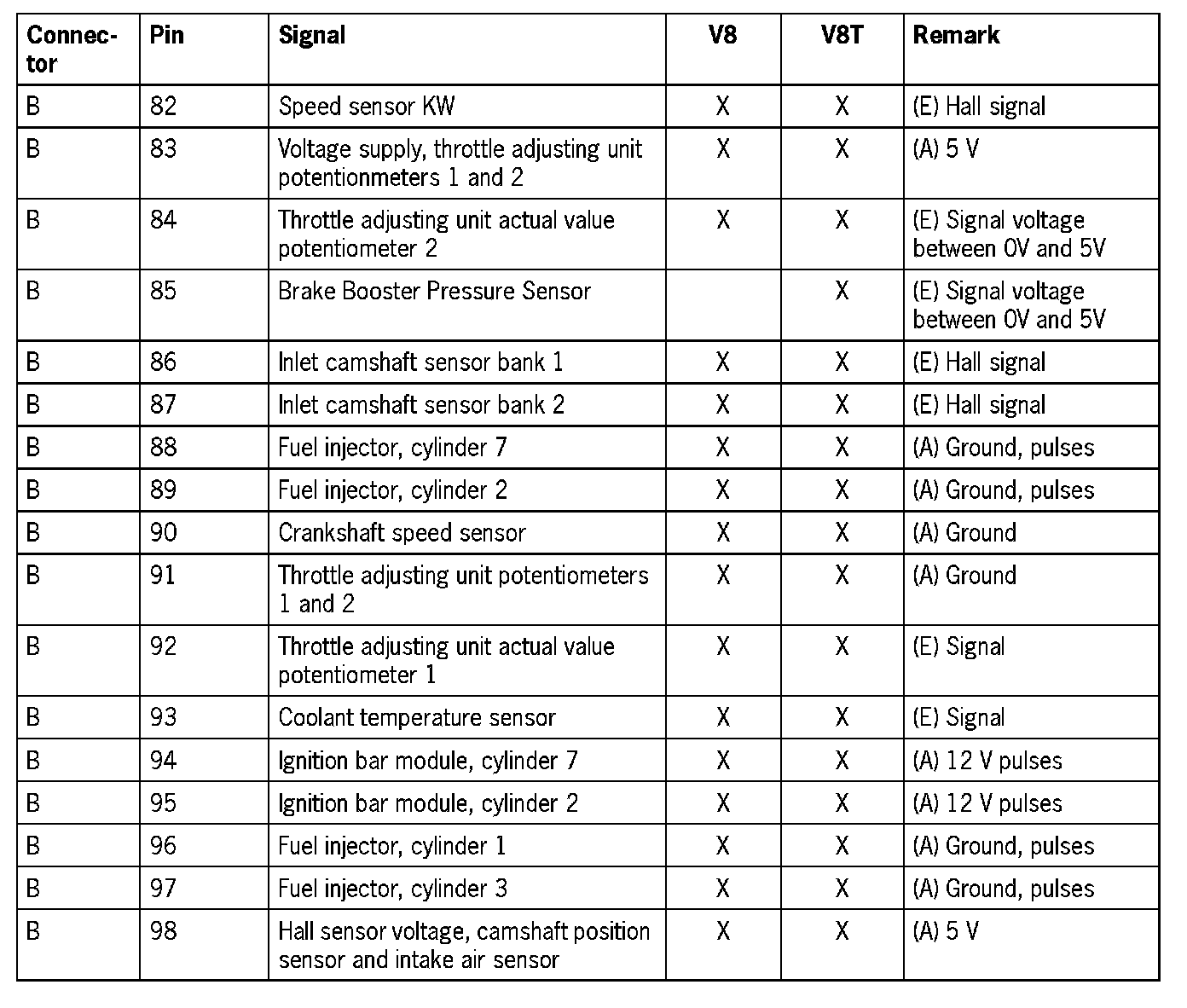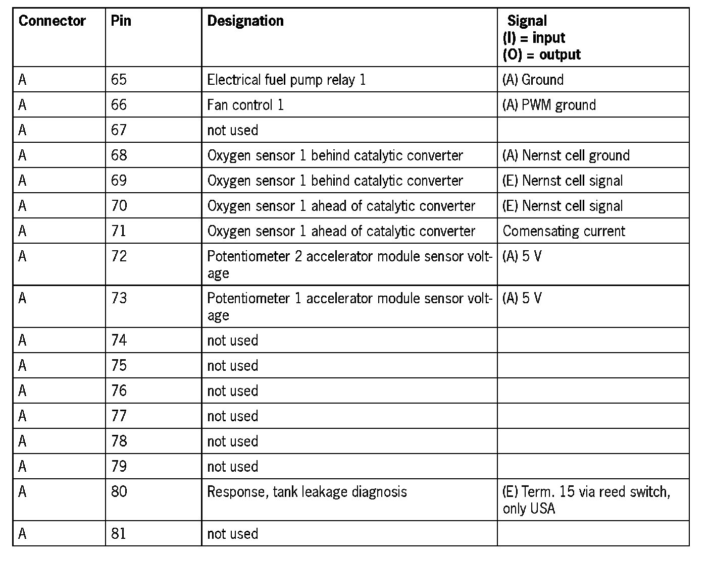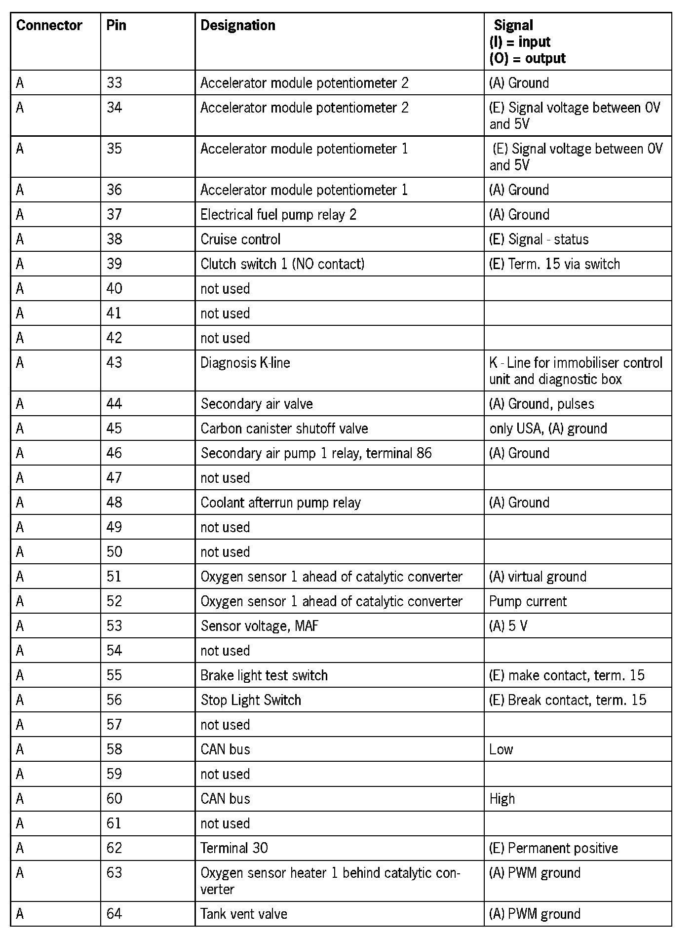 Connector pin assignment of DME 7.1.1Control module and connectors