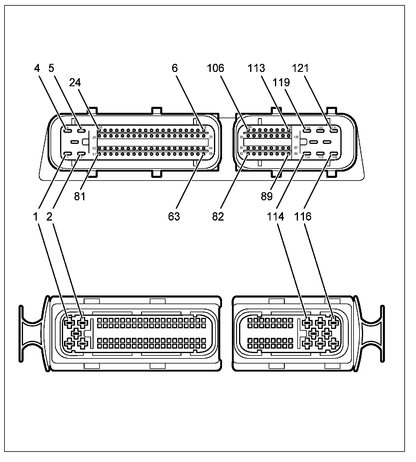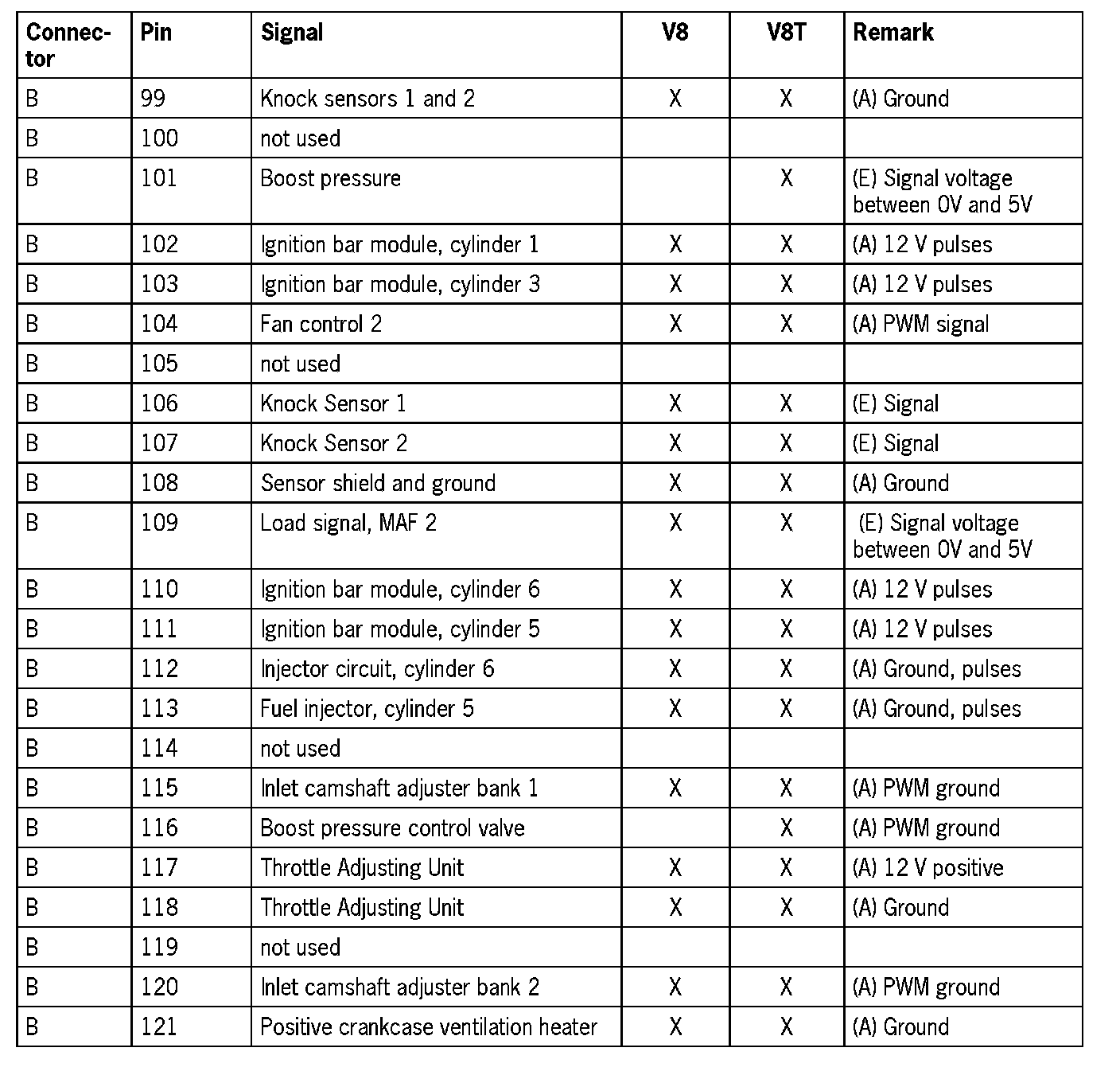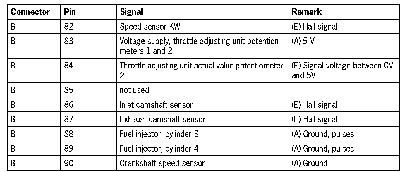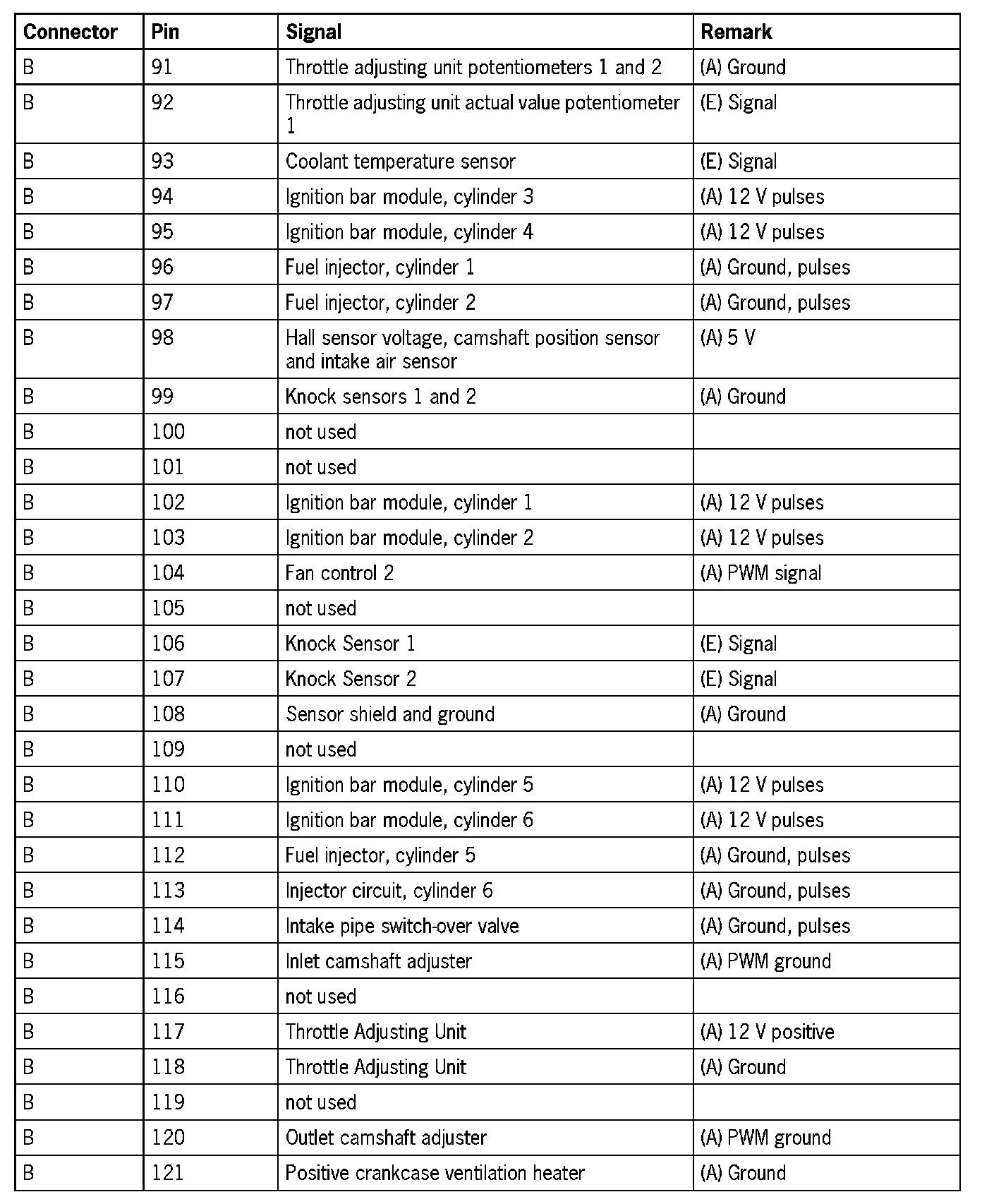 Connector pin assignment of DME 7.1.1Control module and connectors