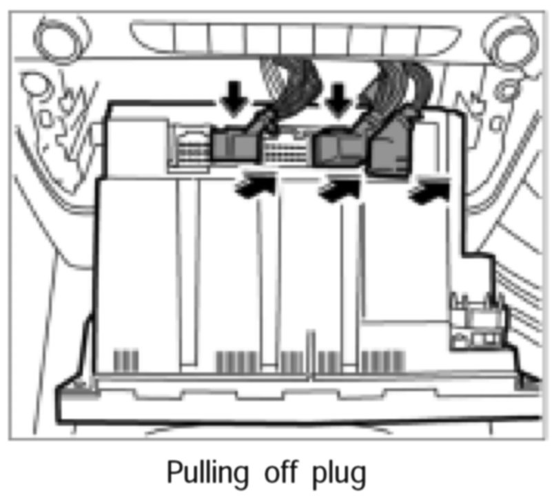3. Press in latch of electrical plugs and pull the plugs up and off.