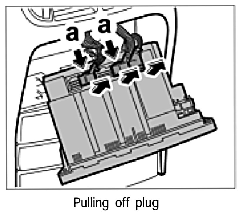 3. Press in latch of electrical plugs -a- and pull the plugs up and off.