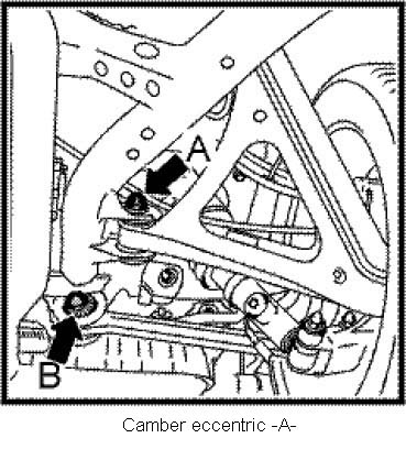 - After loosening fastening nut, turn camber eccentric -A- as required.
