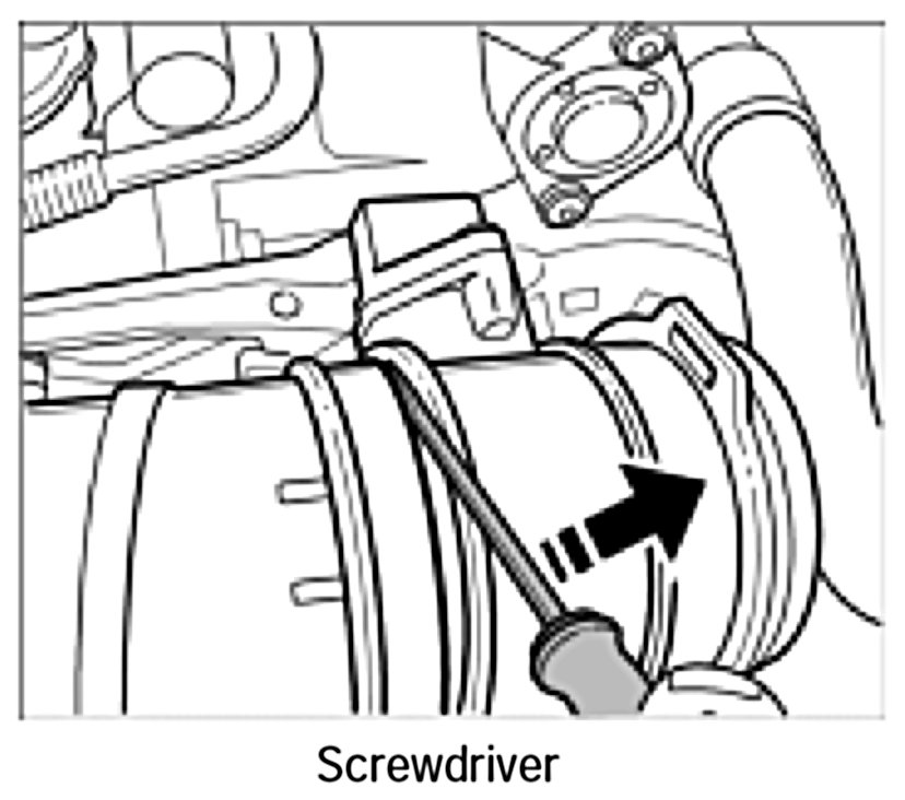 4. Loosen hose clamp of connecting tube to the air flow sensor and carefully press in the two plastic clips on the air cleaner side. Disconnect air flow sensor from the connecting tube. If necessary, lever out with a small screwdriver. -arrow-