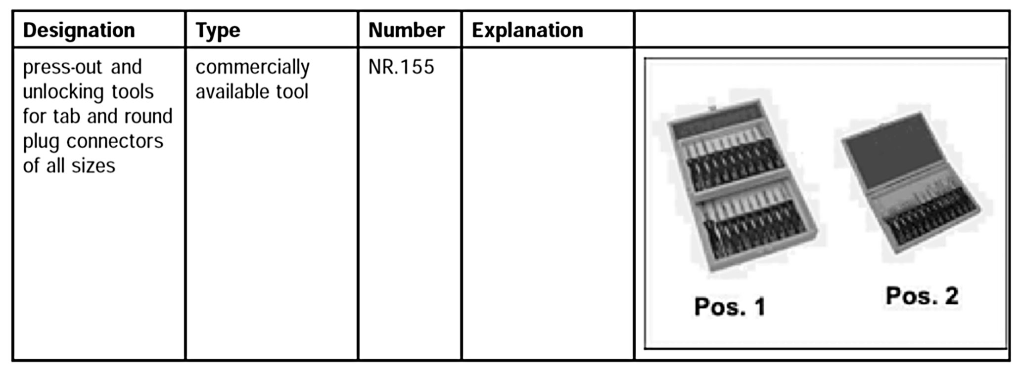 2. Position the press-out and unlocking tools for tab and round plug connectors of all sizes NR.155 on the primary locking mechanism and lift the locking mechanism.