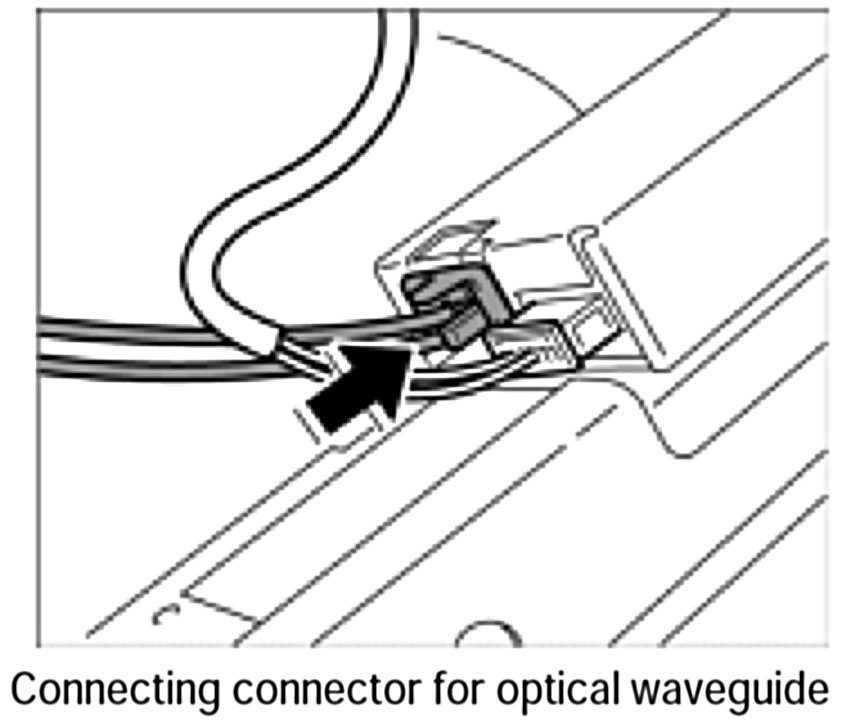 3. Connect the connectors for the new optical waveguide to the affected parts until the connectors are felt to engage. The illustration shows the connector on the CD changer as an example.