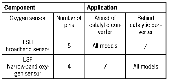 - Do not confuse oxygen sensor ahead of catalytic converter and oxygen sensor after catalytic converter as this will cause implausible fault entries. This note refers to the possibility of mistakenly installing a sensor intended for installation in front of the catalytic converter at the installation position for the sensor behind the catalytic converter in the exhaust system. The plugs themselves are coded and cannot be swapped.