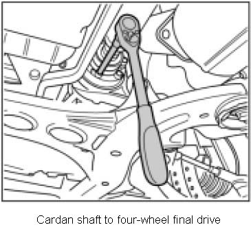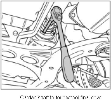 ^ To unscrew the cardan shaft bolts, a second fitter should sit in the vehicle and block the drive harness by actuating the foot brake.