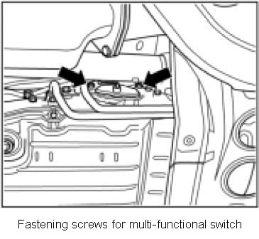 10. Install cap nut, cap, nut with tab washer and rubber washer on the multi-functional switch. Tightening torque: 5 ftlb. Tightening torque: 11 ftlb.