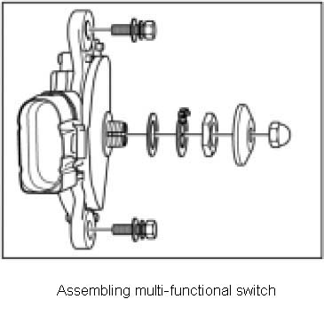 6. Remove cap nut, cap, nut with tab washer and rubber washer on the multi-functional switch.