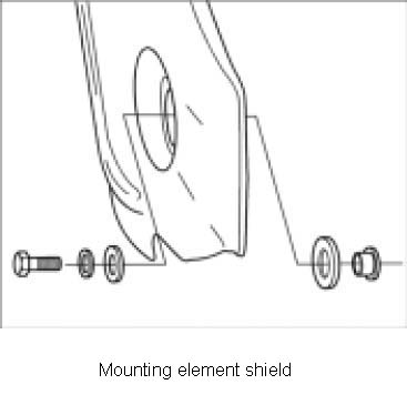 ^ When installing the shield, ensure that all fastening parts, Mounting element shield are present and inserted correctly.