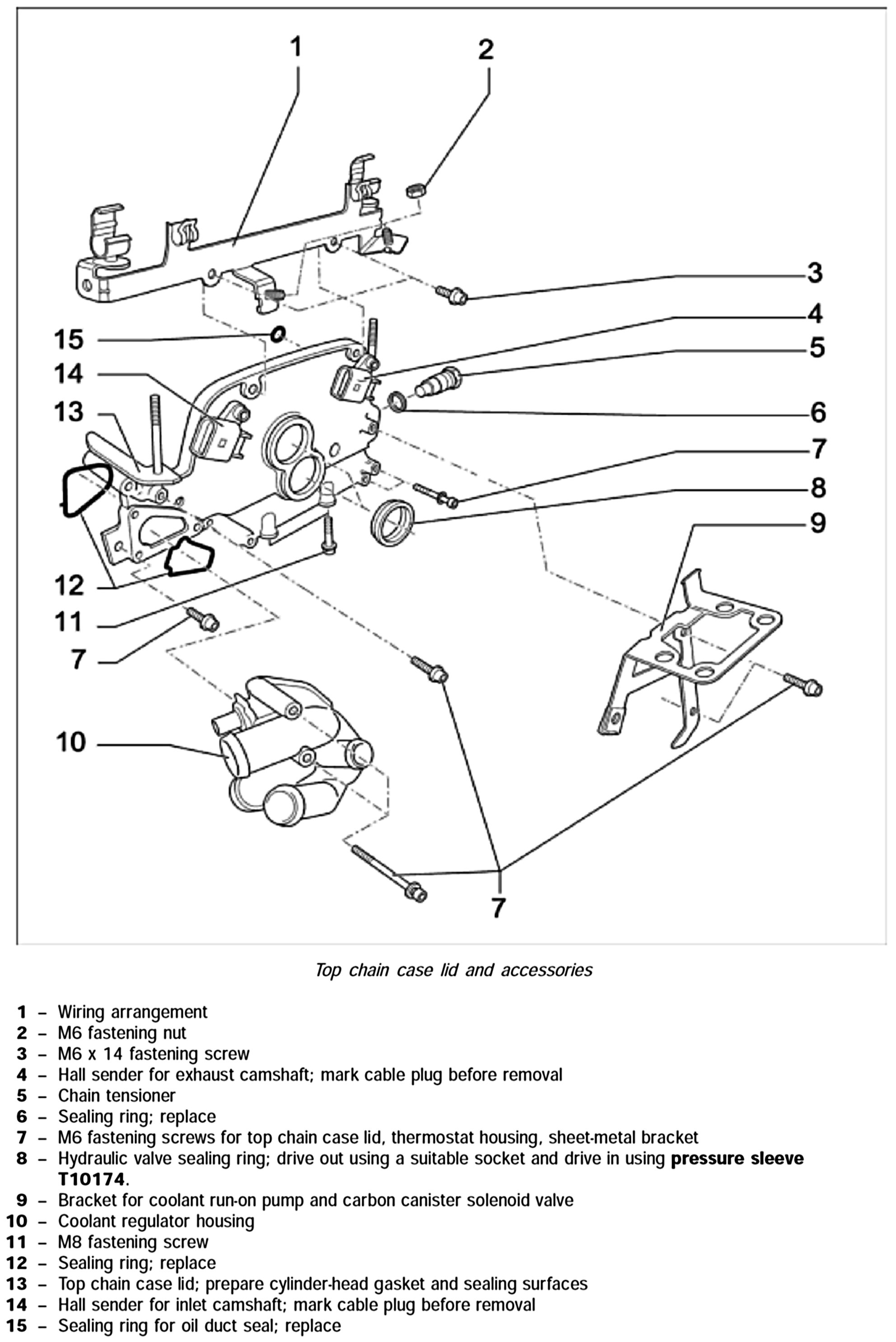 1. Place hall sender in installation position and insert into the top chain case. Screw in fastening screw hand-tight. Tighten fastening screw. Tightening torque: 7.5 ftlb.