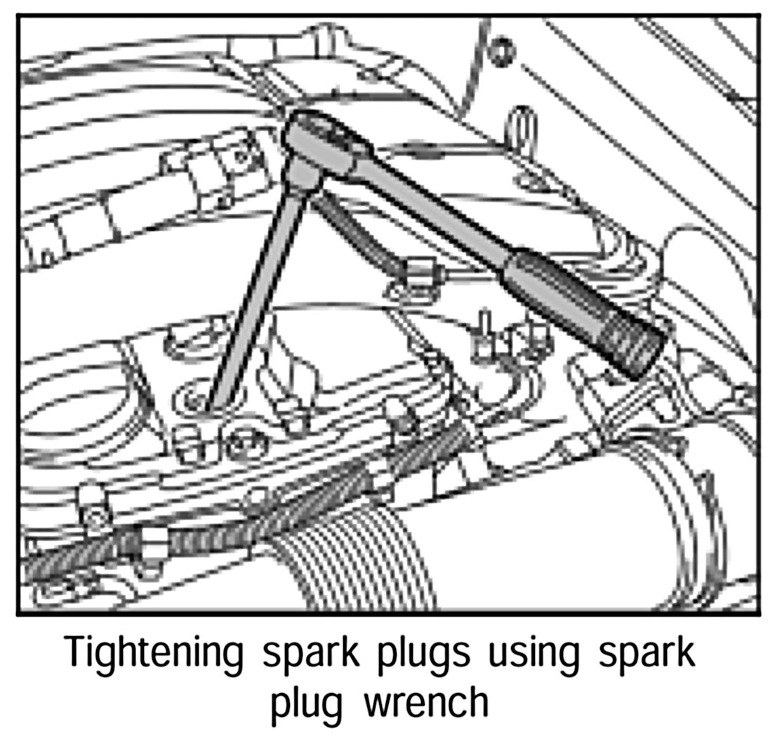 3. Tighten spark plugs using special tool spark plug wrench 3122 B. Tightening torque: 20 (15 ftlb.) Nm