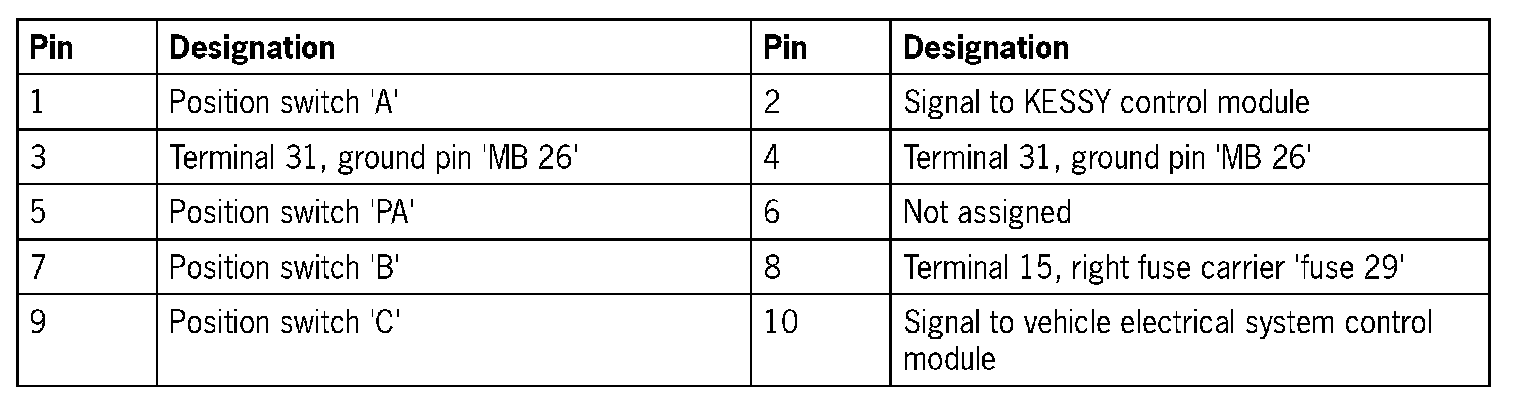 Corresponding socket 'C', multi-function switch, '10-pin' (existing transmission wiring)