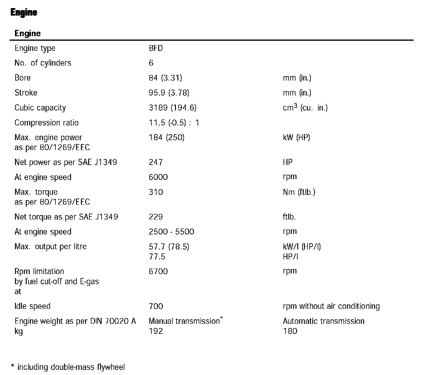 Technical data for BFD engine (Cayenne)Information