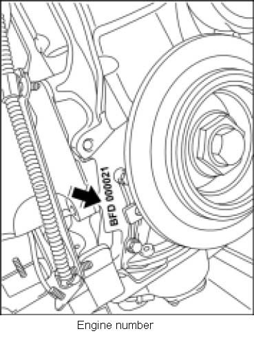 The engine number can be found on the front right of the crankcase next to the crankshaft pulley.
