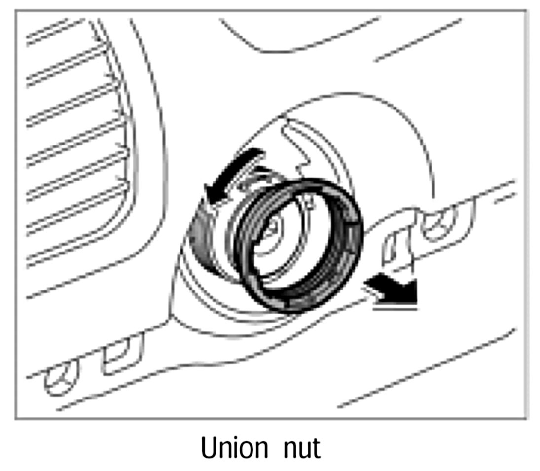 3. Turn union nut using a narrow plastic spatula, for example, or using the special wrench T10152 tool and unscrew the ring from the ignition starter switch.