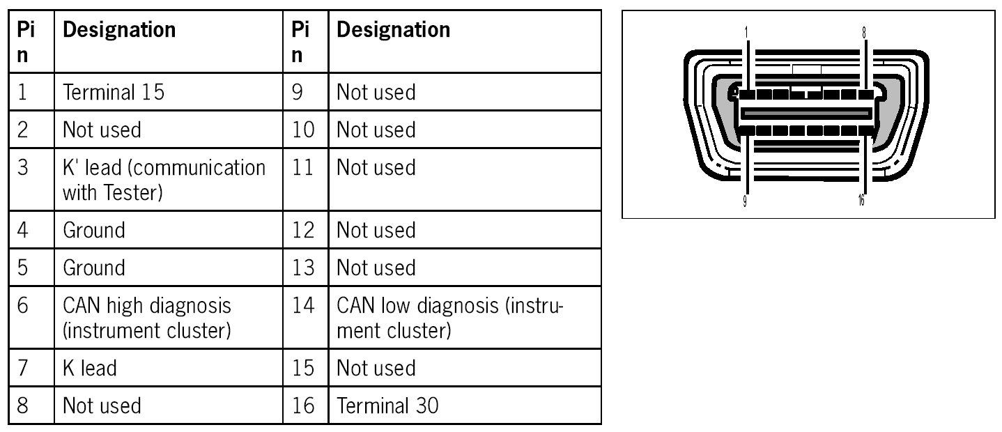 - Pin 4 'terminal 15 power supply via fuse F38/fuse carrier at right of dashboard'