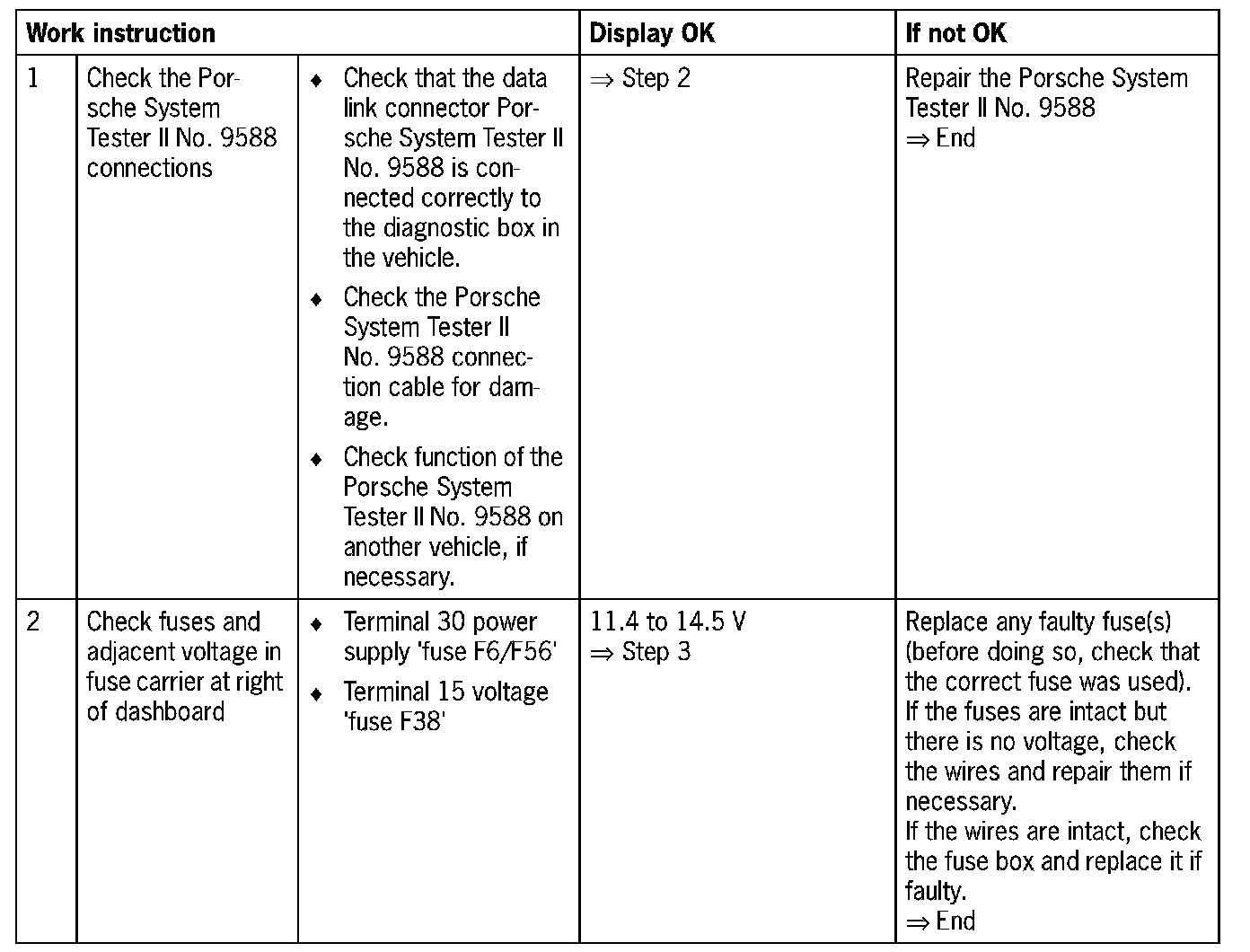 - The Porsche System Tester II No. 9588 is not connected correctly or is faulty